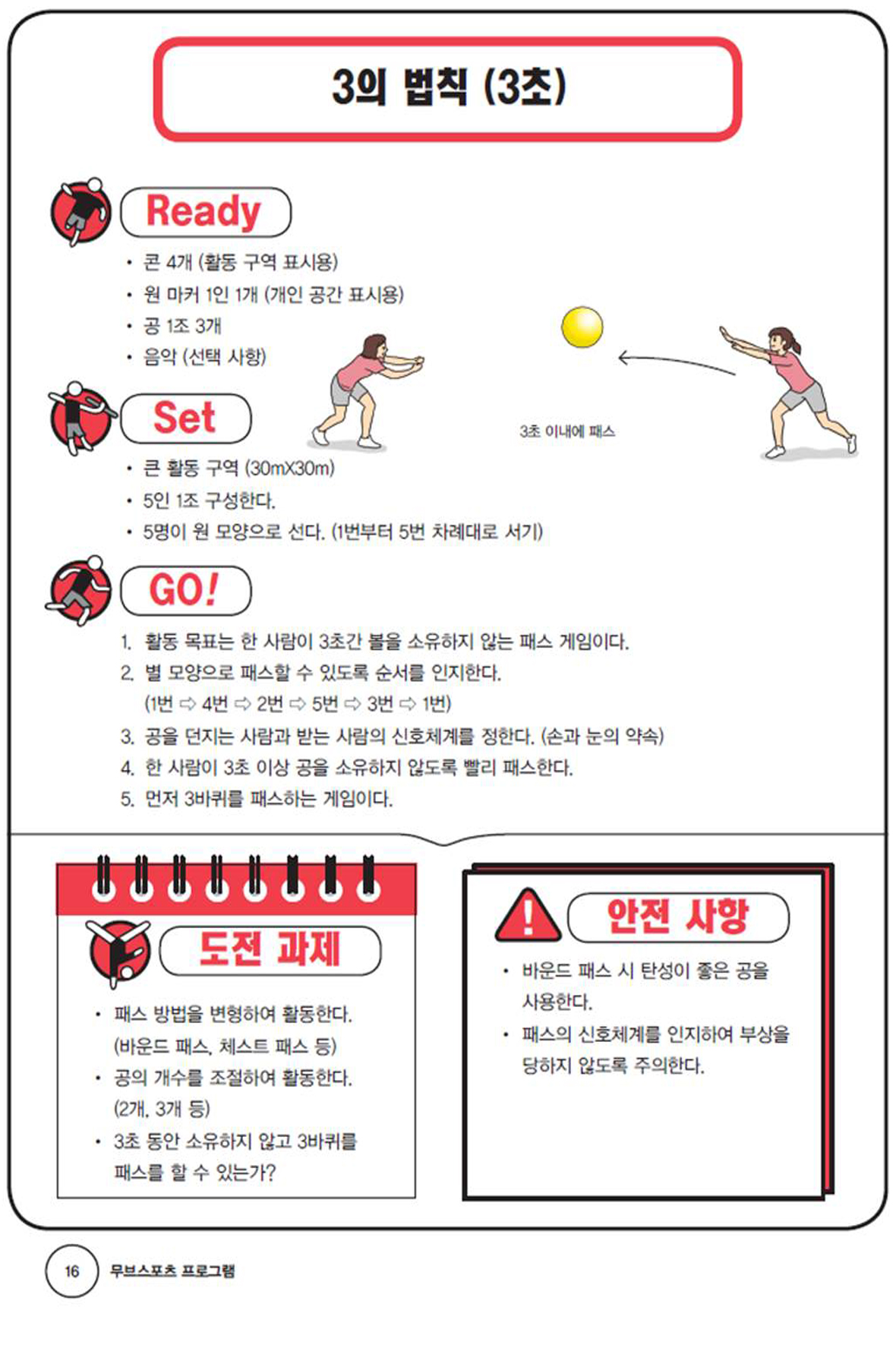 리드업 게임은 다양한 신체활동을 도전/협동/경쟁 요소를 포함한 활동으로 학생들이 짧은 시간에 쉽고 즐겁게 참여 가능한 준비운동 게임입니다