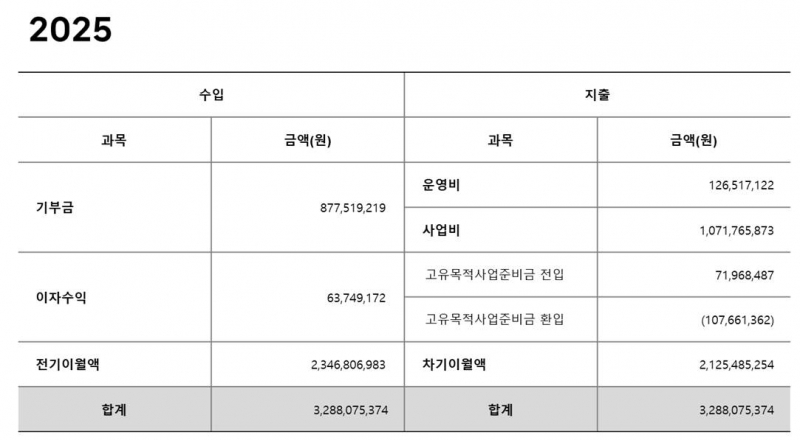 (공시) 2025 재단 재정보고