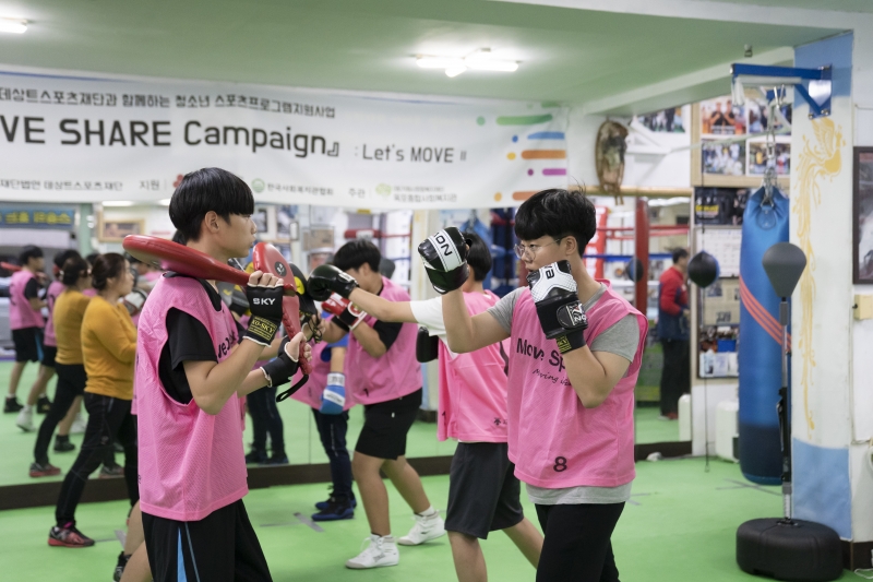2014년부터 운영 중인 무브쉐어 사업은 신체활동이 필요한 아동과 청소년에게 전문 스포츠 활동을 지원하는 사업이다. 현재까지 184개소의 사회복지기관과